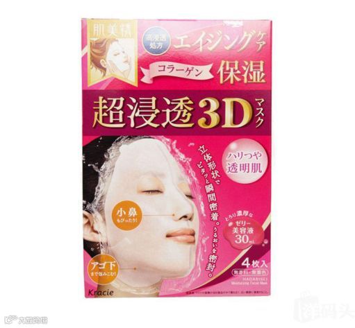 这款肌美精3D面膜比较特别,因为它是立体裁剪的,能照顾到鼻翼鼻头和下巴,甚至还可以敷到脖子,这方面很多面膜都不如它。面膜纸虽然不属于特别薄的但是却很服帖。