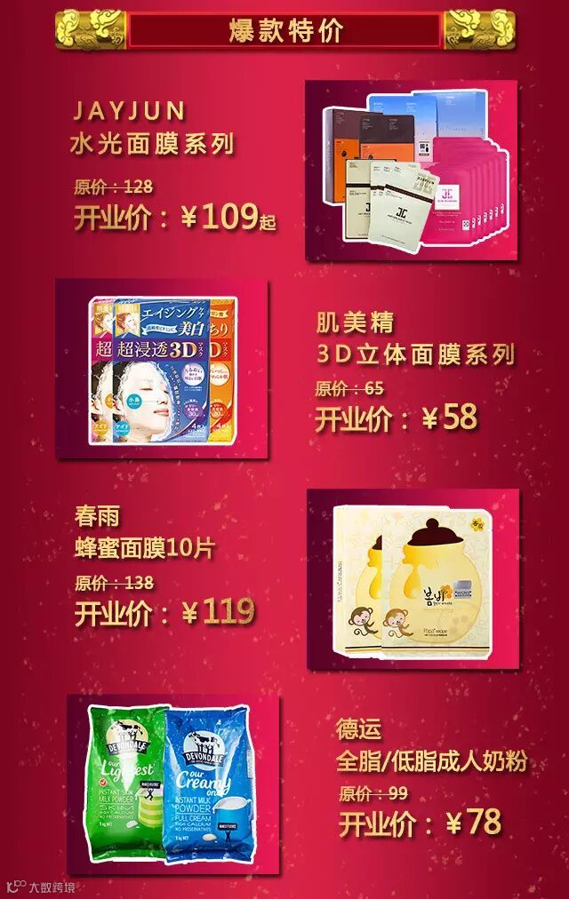 奶粉、纸尿裤、日化、美妆、零食、饮料等等