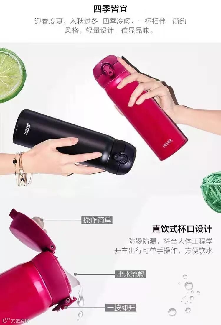 外观时尚设计精巧,防滑吸汗烤漆,耐用又舒适。加上方便时尚的一键开盖设计,告别旋盖的麻烦操作,轻松喝水。