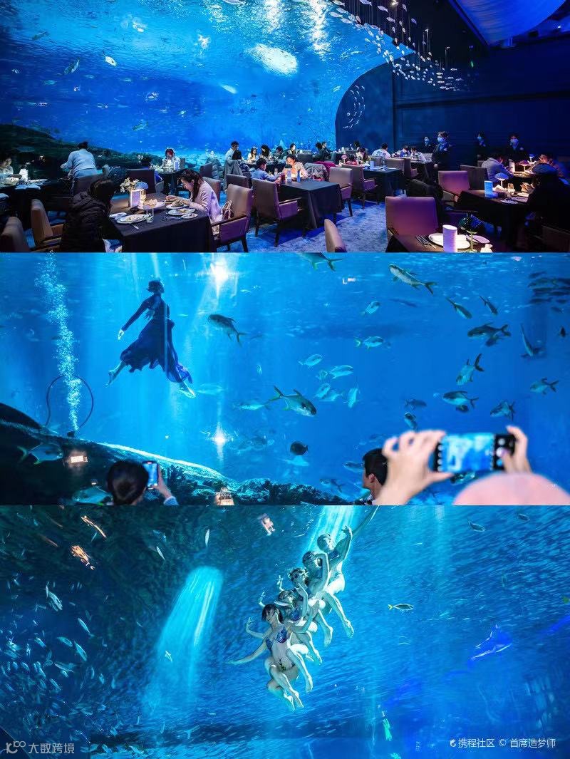 上海首个”美人鱼餐厅“位于火山鲨鱼馆内,在这里可以一边享受精致豪华的法餐,一边欣赏美人鱼在海底曼妙的身姿~