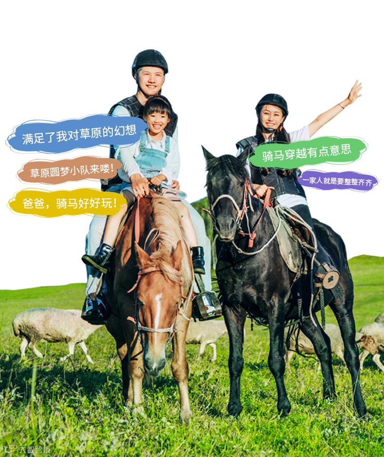 私家马场骑马:我们专门为亲子游学营建立了的马术营地,通过马术理论知识+亲近马匹建立信任来掌握御马相关的知识和技能。让孩子们在马术学习过程中体验草原深处的惬意美好。