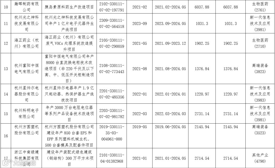 根据《中共杭州市委 杭州市人民政府关于实施“新制造业计划”推进高质量发展的若干意见》、《杭州市人民政府办公厅关于打造全国专精特新名城的实施意见》(杭政办函〔2023〕81号)、《杭州市制造业企业技术改造资金补助实施细则》(杭政办函〔2019〕46号)等文件精神,区经信局组织开展了2024年杭州市制造业企业技术改造资金补助项目申报工作。经初审,拟推荐浙江大华智联有限公司PCBA四期智慧工厂项目等19个项目申报2024年杭州市制造业技术改造资金补助,现予以公示,欢迎社会各界进行监督。