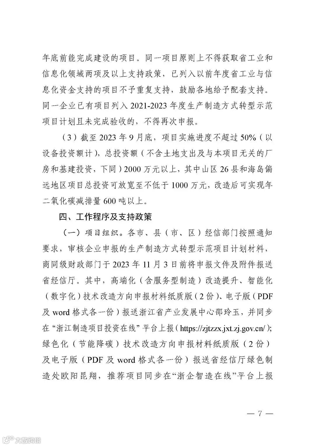 【申报通知】浙江省经济和信息化厅浙江省财政厅关于组织实施2024年度生产制造方式转型示范项目计划的通知 绿纽科技专精特新服务平台