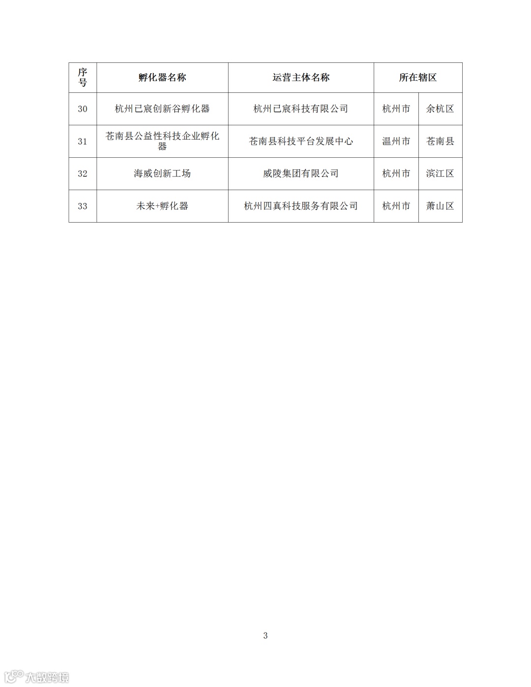 根据《浙江省科技企业孵化器管理办法》(浙科发高〔2021〕24号)和《关于开展2023年度省级科技企业孵化器和省级备案众创空间绩效评价工作的通知》(浙经信企服便函〔2024〕72号)相关要求,我厅对省级科技企业孵化器开展绩效评价。现将“智慧物流创新中心(杭州丰泰电商产业园管理有限公司)”等33家2023年度考核评价优秀(A类)的省级科技企业孵化器予以公示(详见附件)。公示期为2024年11月25日至11月29日。有关单位和个人如对公示持有异议,请在公示期内向我厅书面反映。单位提出异议的应加盖公章,个人提出异议的应签署真实姓名和联系方式。