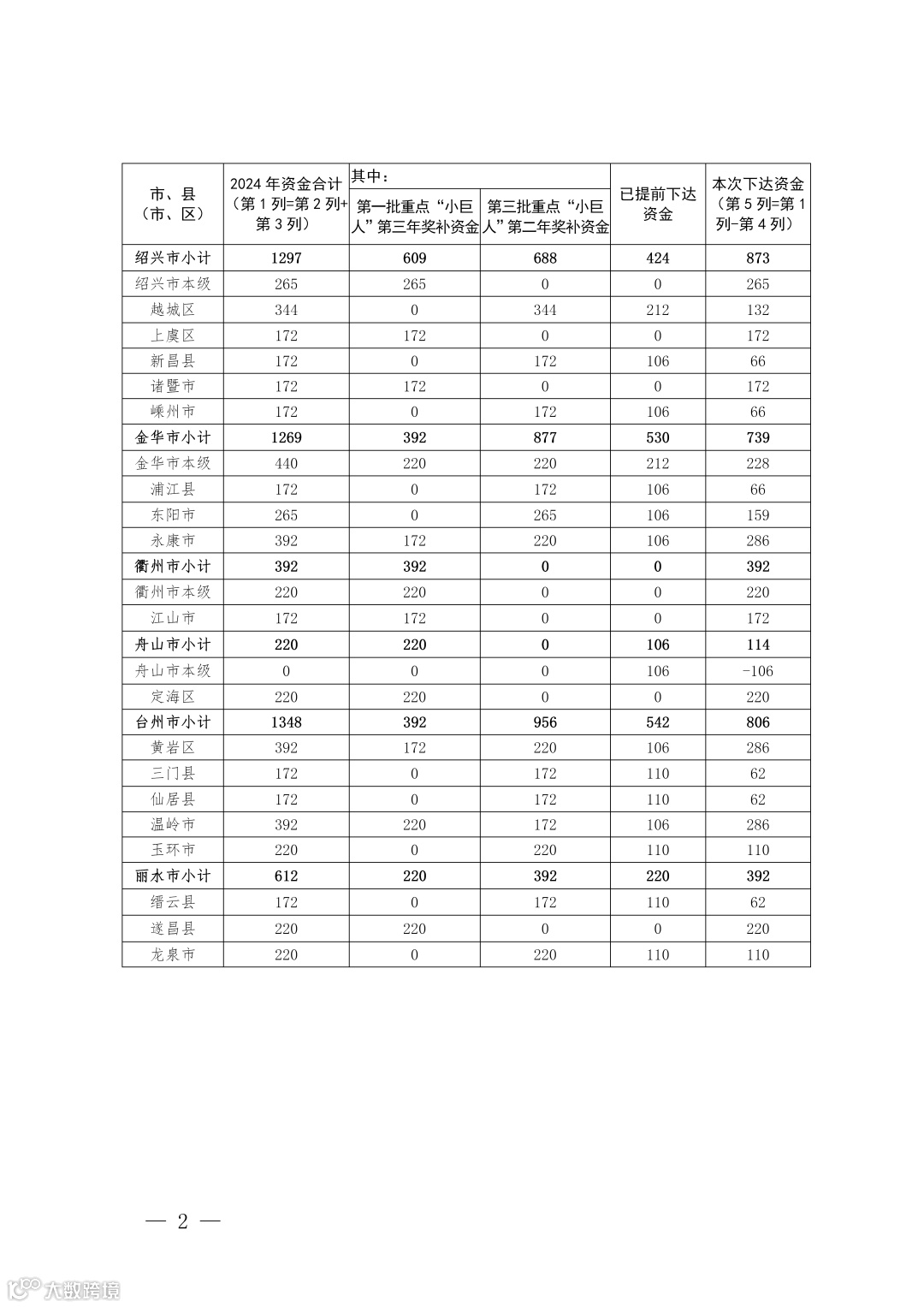 1.2024年国家中小企业发展专项资金(专精特新方向)分配表