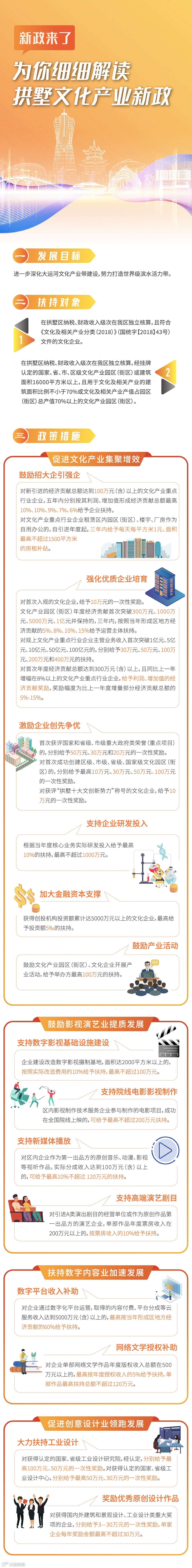 《拱墅区关于鼓励文化产业创新发展的若干意见》作为日前拱墅区新鲜出炉的“1+3+N产业政策”之一,将为拱墅区进一步深化大运河文化产业带建设,努力打造世界级滨水活力带提供强劲动力。
