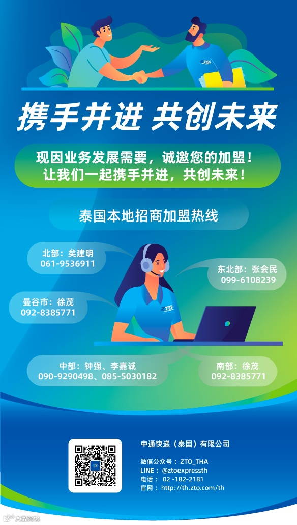 如果您认同泰国中通,有加盟泰国中通的意愿,请联系我们,我们共同成长,创造属于自己的辉煌!