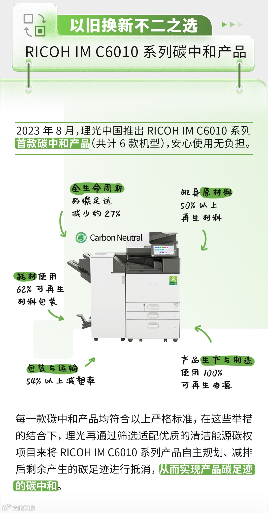 以旧换新 绿色同行|选择RICOH IM C6010系列,为客户提供零碳价值
