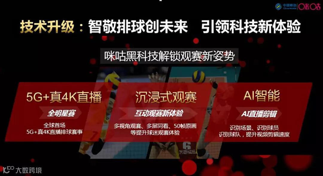 首先,3月23日-24日的深圳宝安体育馆将会迎来排超史上首次5G+真4K直播。目前,中国移动已经在全国17个城市开展规模试验和应用示范和5G联合创新场景研究,5G的商用将为体育IP的全场景呈现带来更大的想象空间。除了5G+真4K直播技术,此次排超联赛,咪咕还将上线AI直播剪辑、虚拟现实、多视角观赛等一系列“黑科技”。