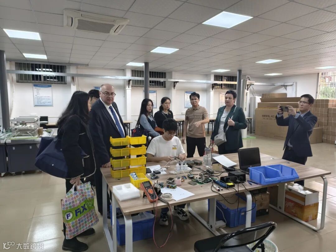 在参观过程中,安德烈·萨科维奇校长和郭凤志秘书长不时驻足询问,对飞瑞敖公司展示的产品方案表现出浓厚兴趣,不时拿出手机进行拍照摄像。同时,双方就人工智能实训设备以及课程解决方案进行了热烈的交流探讨。