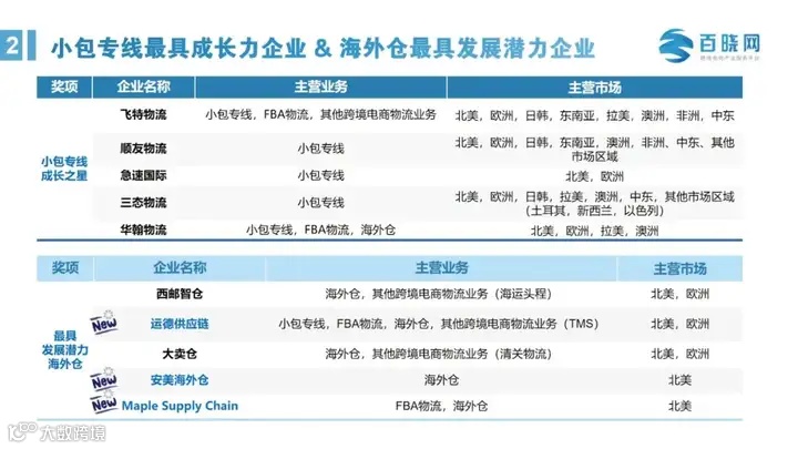 图片来源:晓生研究院4. 海外仓最具发展潜力企业