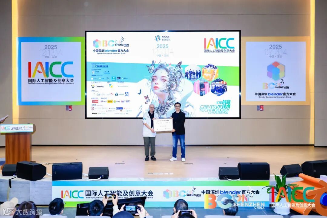 在IAICC大会上,Blender官方正式授予Renderbus瑞云渲染“Blender中国合作方指定云渲染平台”称号并举行授牌仪式。这一认证远超越普通的商业合作,它代表了国际顶级开源组织对瑞云技术能力、服务品质及社区贡献的最高规格认可。