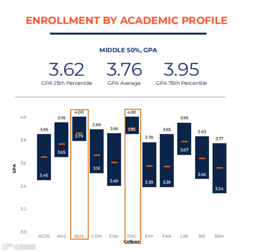 GPA成绩:25%分位数为3.62,中位数3.76,75%分位数3.95