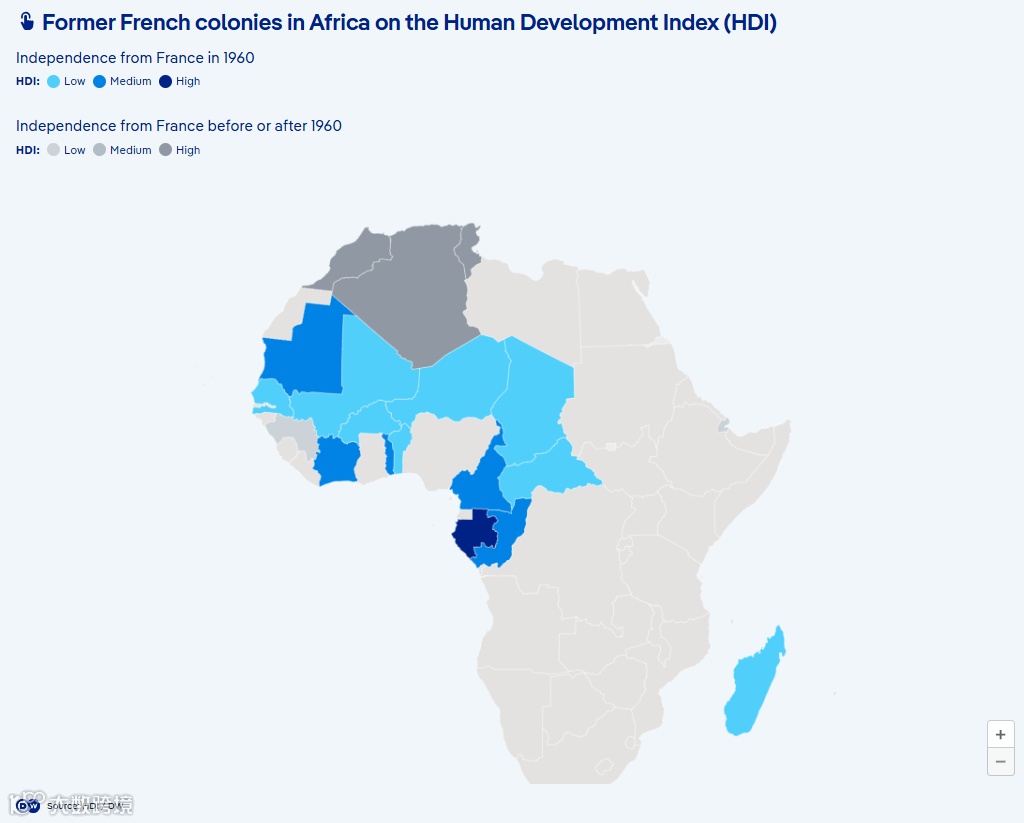 联合国人类发展指数(HDI)显示,14个前法国殖民地中,有8个国家——包括乍得、马里、布基纳法索和尼日尔——被列为“低人类发展水平”,排名接近垫底。
