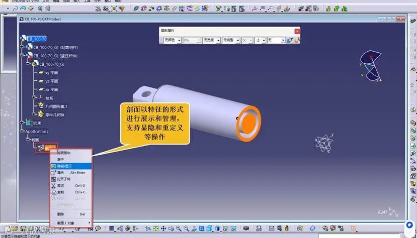 剖面管理:在模型树中以特征的形式进行展示和管理,支持显隐、重定义和删除等操作;
