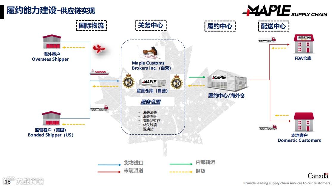 经过多年的发展深耕,Maple不断加大投入,在加拿大建立了深厚的本土化物流履约能力,能为客户提供五大核心业务: