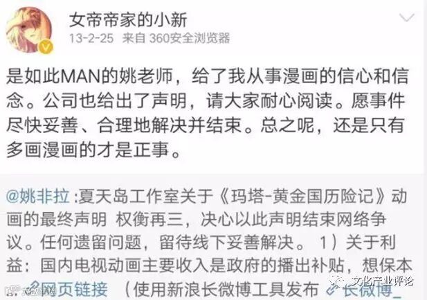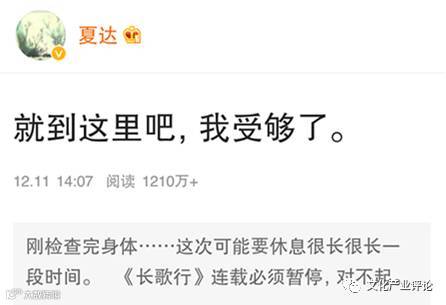 总结:目前的中国漫画正在从纸质向网络付费转变,漫画家也逐渐倾向于和漫画平台合作,夏达事件应该是中国漫画转型过程中必须要面对的问题,也是多年前漫画家和漫画工作室不对等关系的遗留产物(抛开个人问题不谈,其本质还是因为行业机制未成熟),版权问题、漫画工作室、漫画经纪公司等一系列问题都将慢慢浮上中国漫画的水面,如何在漫画产业转型中找到平衡漫画家(即漫画内容提供者)和漫画品牌经营者(更重要的是完善整个漫画品牌运营的产业链)之间关系的点,是今后很长一段时间里中国漫画产业需要解决的问题,希望内容提供者可以有更多的发言权(题外话:也希望中国的编剧可以在影视改编过程中有更合理的位置),维持作品的核心思想,不要让艺术过多屈服于资本。未来中国漫画产业会如何发展,让我们拭目以待,期望它会越来越好。