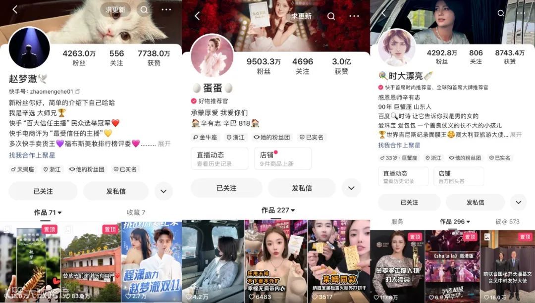赵梦澈、蛋蛋、时大漂亮的快手主页截图