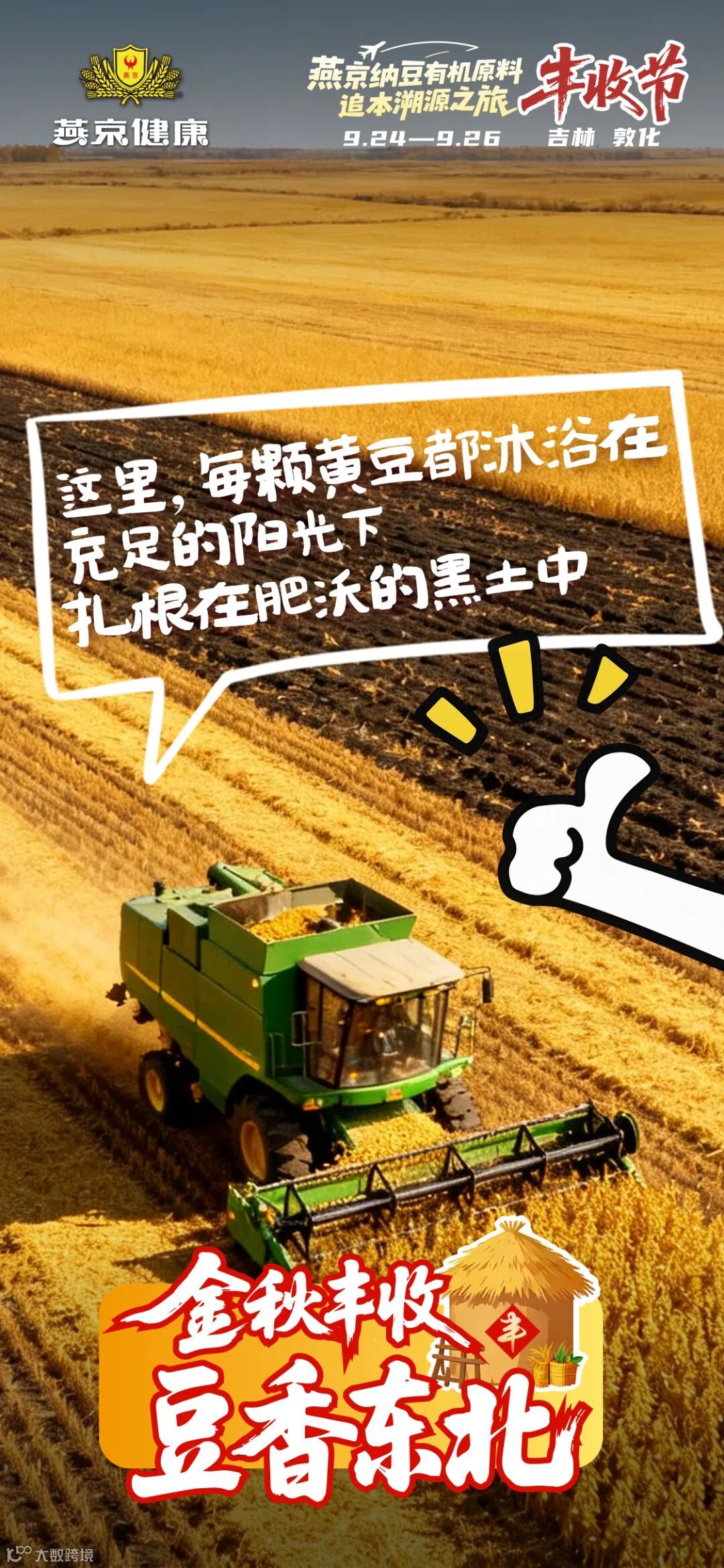随着收割机的轰鸣声,今年的丰收节圆满落幕,但燕京纳豆对品质的追求永不止步。未来,燕京纳豆将继续扩大有机种植规模,完善生产、检测体系,为消费者提供更加安全、健康的纳豆产品。