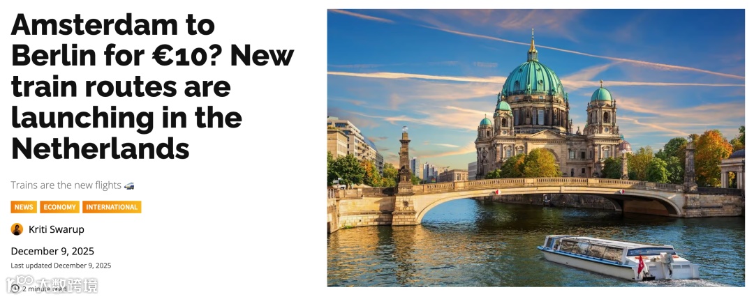 没看错,阿姆斯特丹出发直达柏林只需 €10。荷兰新晋铁路运营商 GoVolta 宣布将于 2026 年 3 月正式上线国际线路,目标就是把让人又爱又恨的 NS 和 Eurostar“天价车票”彻底改写。