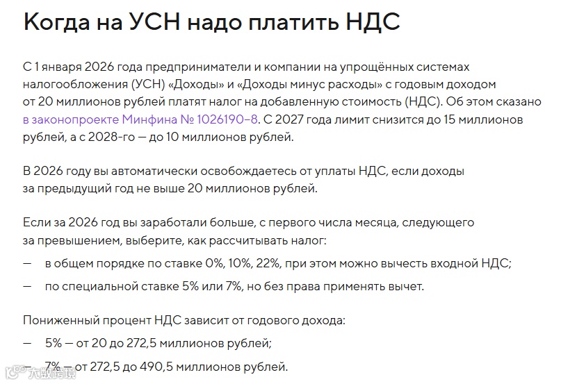 值得注意的是,面对商界的压力,俄罗斯政府对增值税起征点的调整方案作了优化,从原计划的“一步到位”改为三年逐步实施(针对上一年全年申报营业额达标,且适用于简税制的俄罗斯企业,2026年起征点降至2000万卢布,2027年降至1500万卢布,2028年降至1000万卢布)。