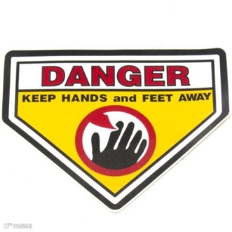 根据美国相关法案要求,手推式割草机应在刀片座或者没有刀片座的情况下在其他刀片护罩或相邻支撑结构处粘贴上如下图所示的警示标签:
