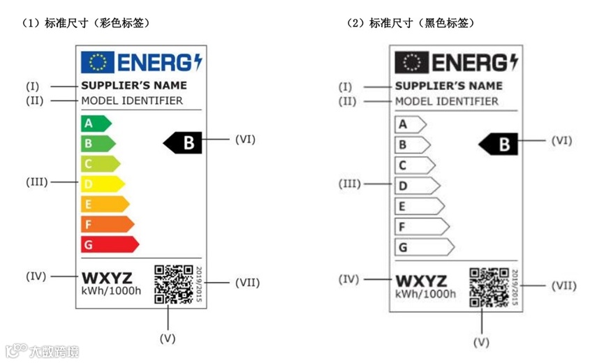 【注意】仅当包装上的所有其他信息(包括图形)均以黑白印刷时,指示能效等级的标签和箭头才可按照黑白标签印刷。除此种情况外,都需要使用彩色标签印刷。