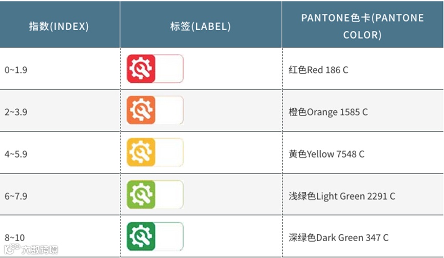 2)法国可修复性指数的标签颜色与数字是相对应的,颜色从不可修复的红色到易于修复的深绿色,所以不可以印刷成黑白的;