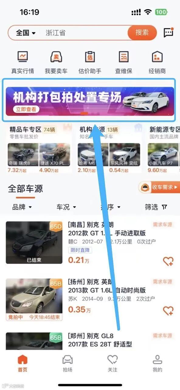 拍卖入口:车易拍商户版APP首页横幅「机构打包拍处置专场」