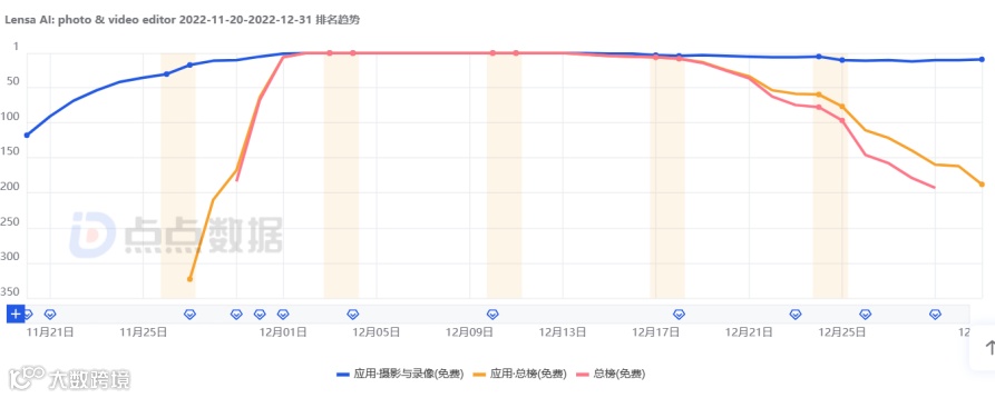 (2022年11-12月 Lensa美国应用榜排名 图源:点点数据)