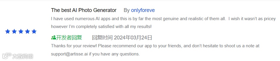 有人认为写真主要在于“真”,用较低的价格和时间换取和线下写真馆相似的效果是用户所追求的。Artisse就是这样一款通过上传照片训练AI模型,能使生成照片更加逼真的软件。从使用者的评论来看,也证实了不再一味追求美感,而是更贴合真实性这一点。