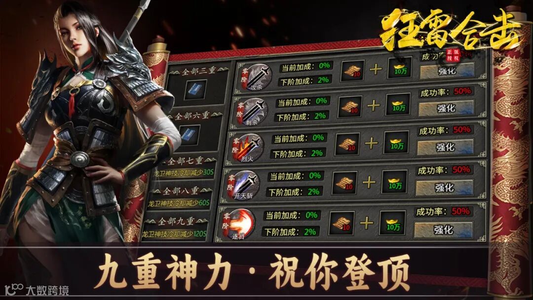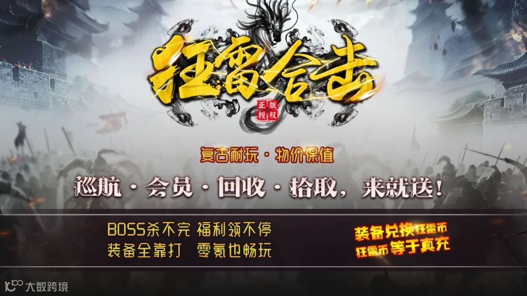 还记得比奇城的晨雾、沙巴克的战旗吗?还记得那些年通宵刷沃玛、为一把裁决争得面红耳赤的热血吗?《狂雷合击》带你穿越时空,完成你未完成的梦,当年得不到的,当年不敢想的,这里都有,所有装备材料都靠打,怪物爆红包,拿起你的屠龙刀,唤醒沉睡的热血,《狂雷合击》带你重回2001,复刻经典场景、音效与怪物,唤醒沉睡的青春记忆!