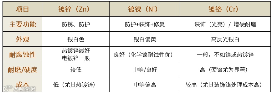 中间镀层:如镍→铬体系,提高耐蚀与外观
