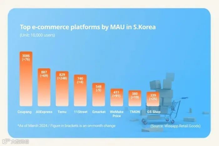 在击败11Street、Gmarket 和WeMakePrice 等本土竞争对手后,这两个中国电商平台目前在韩国电商平台市场按月活跃用户数分别排名第二和第三,仅次于韩国本土电商平台Coupang Inc.