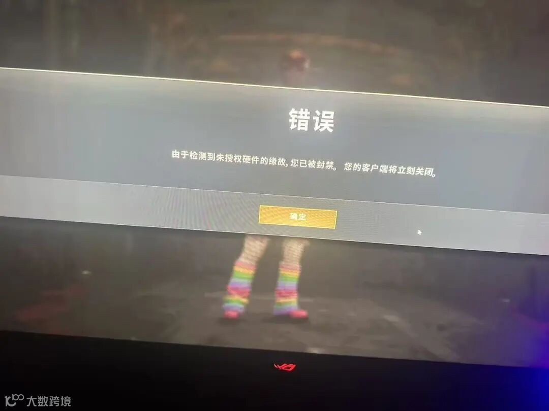 玩家启动PUBG时,游戏弹出提示并立刻关闭:“由于检测到未授权硬件的缘故,您已被封禁。您的客户端将立刻关闭”。