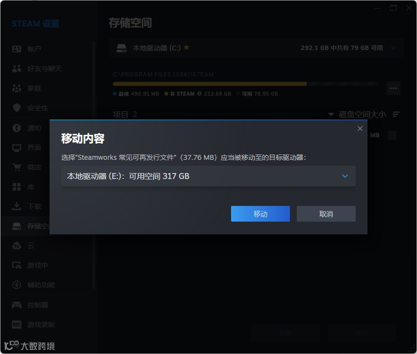 然后将你想要移动的游戏进行勾选,点击移动,然后选择想要移动的位置,就可以一键转移你的steam游戏了。