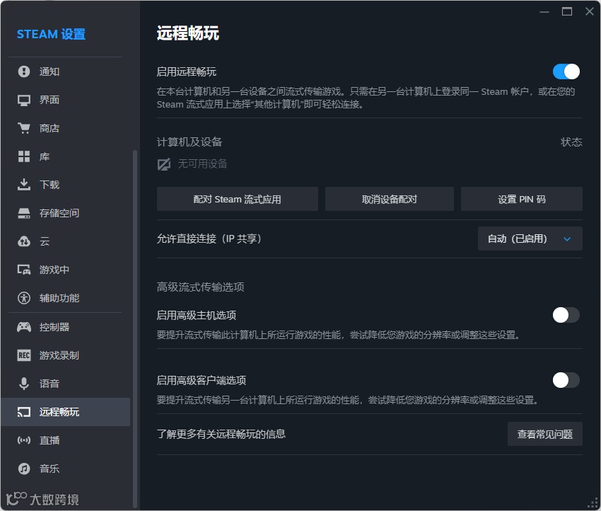 有时候在外面,也想玩家里的steam游戏,就可以用steam远程畅玩。