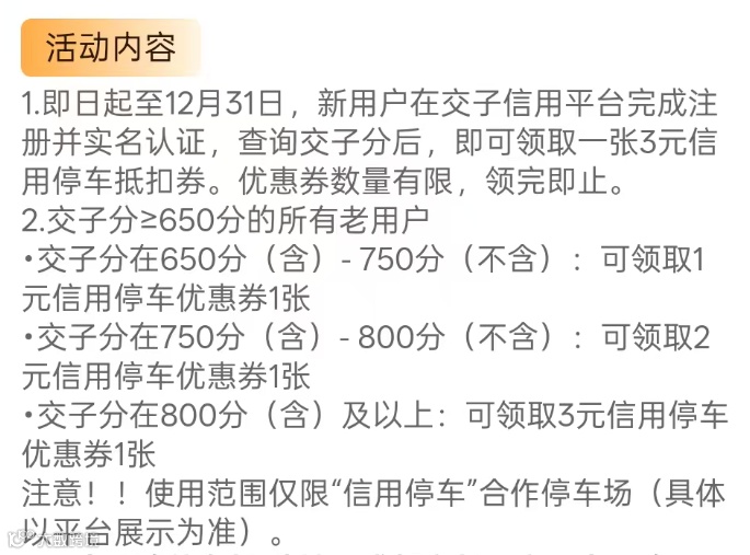 信用停车服务以个人诚信积分(交子分)作为核心依据,向信用分650分以上的市民提供差异化停车优惠。本次优惠服务覆盖了彭州国泰北路停车场、四通街停车场、北大街停车场、牡丹文化广场地下停车场以及体育公园地下停车场,符合条件的市民可通过“交子信用”平台绑定车牌号,系统将依据信用分实施分级激励。