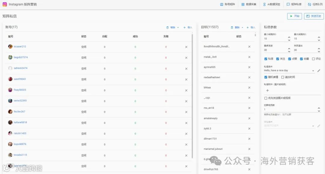 支持百个账号并发操作,每秒批量发送私信,大幅提升触达效率。