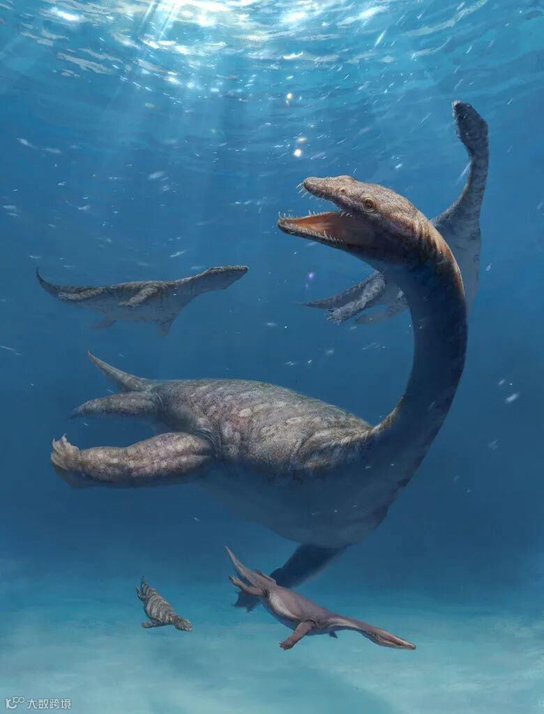 在恐龙大家族中,蛇颈龙类以惊人的长颈而闻名——它们的颈椎数量超过30节,并具有宽大的鳍状肢,能以水翼船般的姿态在水中“飞行”。