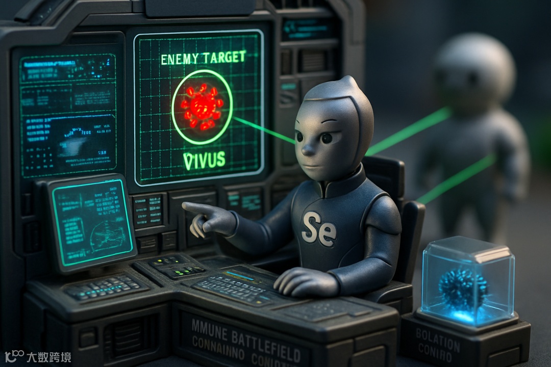 打仗,还得靠脑子!硒,就像一位冷静睿智的“情报分析师”。它能帮助免疫系统精准识别敌我,避免“误伤友军”,并向部队发出精确的攻击信号,激活免疫细胞进行有效攻击。同时,它还能迅速拆除敌人留下的“隐形炸弹”(自由基),保护指挥部的安全。