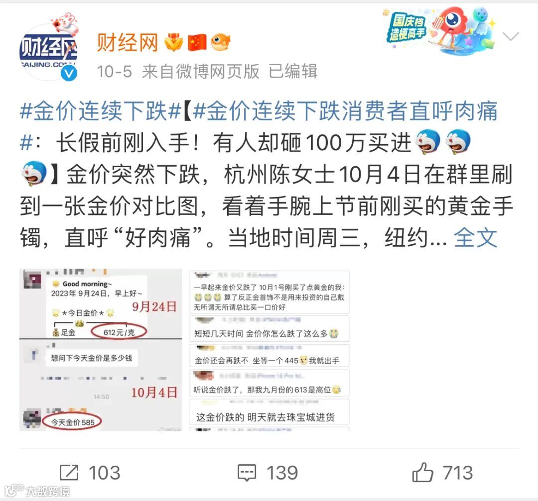 近几天,“金价暴跌”多次冲上热搜,成为大家在国庆假期间热议度较高的话题。