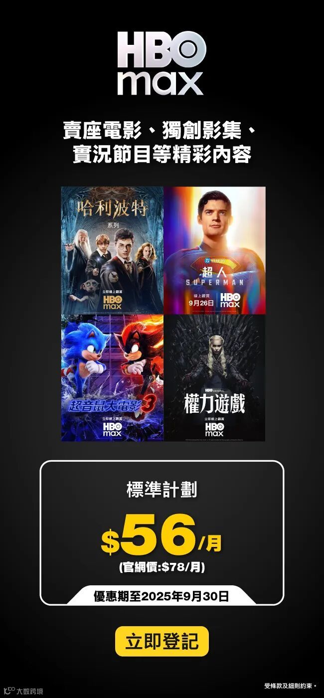 【只需$56/月】頂尖歐美影視一網打盡!包羅萬有!