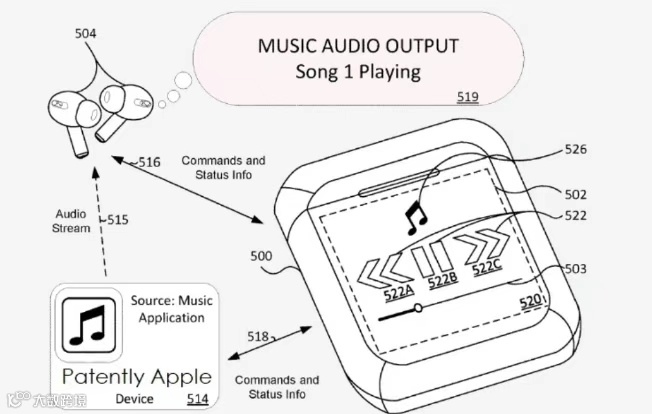 作为电子市场新的“流量密码”,屏幕耳机从背面看平平无奇,翻过来就能发现另有玄机。一块大拇指一样大小的屏幕,不仅可以触屏切歌,调节音量,还能在上面看歌词。网上流传着一张苹果AirPods的专利图,图上显示,充电壳上正是加了一块像Apple Watch一样的触屏屏幕。