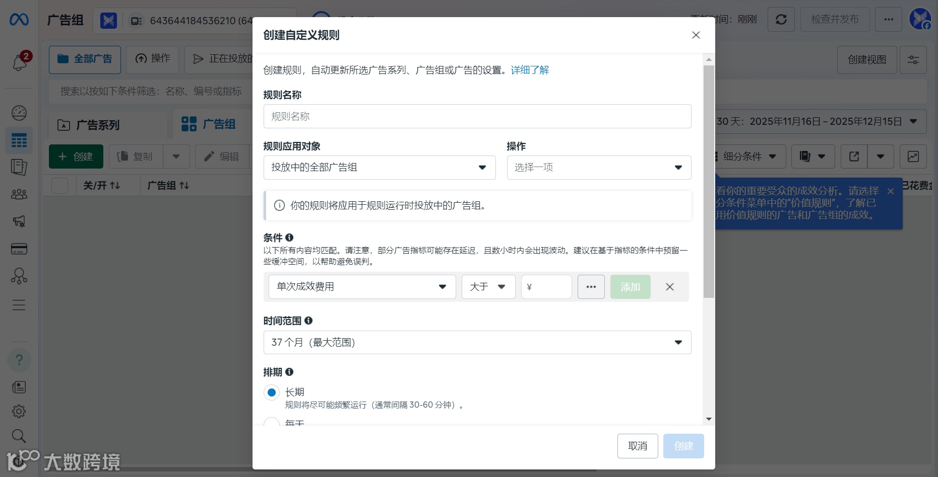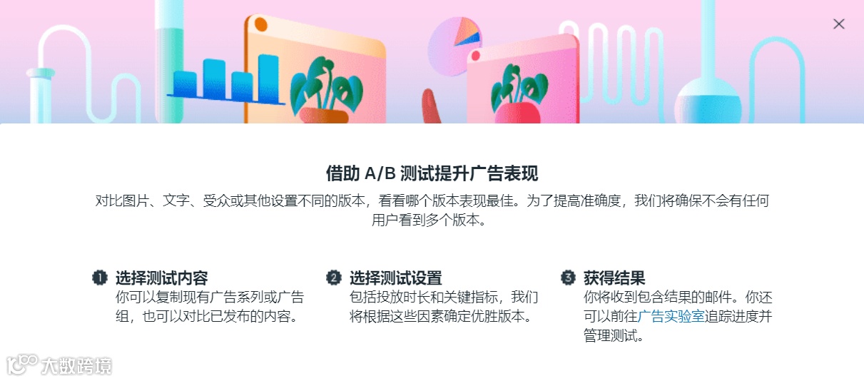 内置功能:Meta 广告管理中直接设定变量与实验时间,系统自动计算结果;