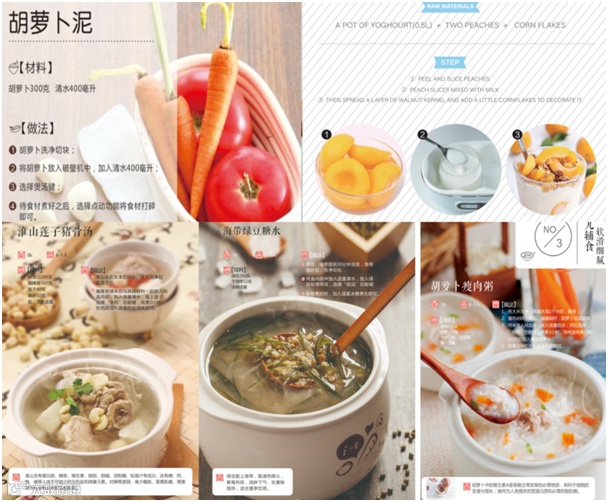 比如在马来西亚独立站上,菜谱以破壁机、炖煮锅、烤箱、酸奶机、婴儿食品炊具划分,菜品的制作介绍细化到用料、做法步骤、几人份、如何操作电器、电器烹饪时长,以及不同食物富含的营养成分等。同时,或许是考虑到华人群体,在该地区网站菜谱的介绍中,不少带有中文字样。