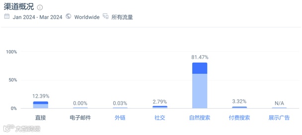 Similarweb显示,2024年1-3月,该独立站月均访问量在22万。流量来源渠道显示,81.47%为自然搜索,但进一步看,自然搜索中非品牌关键词搜索占据98%,或说明小熊电器在越南互联网中非品牌运营覆盖面更广,也与其独立站中广泛的内容信息有关。