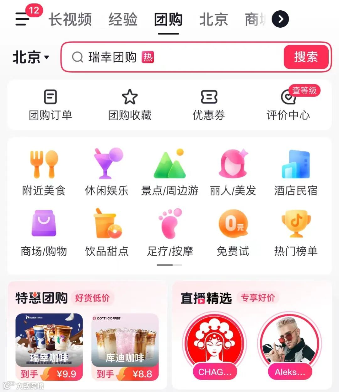 从站内页面设置上看,抖音也在团购页面建立特惠团购、直播优选、免费试和热门榜单入口,从内容上来看与美团几乎别无二致。