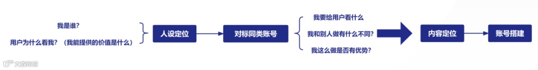 当我们清楚明白这5个问题之后,我们的定位工作基本上也就完成了。那这些问题呢,包括前面说的人设定位、账号定位、内容定位,那这些工作,在实际业务中,我们具体该如何去做,或者说,我们应该先来解决什么问题,再来解决什么问题,它的工作流程是什么样的呢?