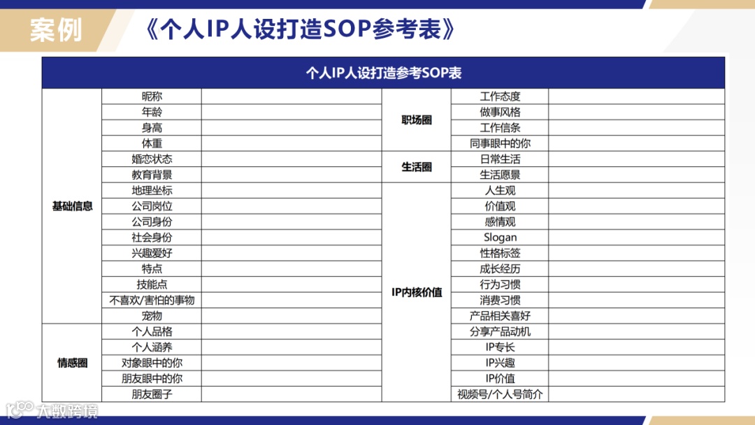 这份人设打造的SOP表格呢,它其实也是帮助我们自己去更好的认识自己,去挖掘自身身上的优势和特点出来。然后基于此去打造合适自己的人设。
